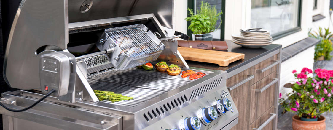 - Broil King : La série connectée iQue et deux cuisines extérieures complètes facilitent encore plus la vie des amateurs de cuisson en plein air.