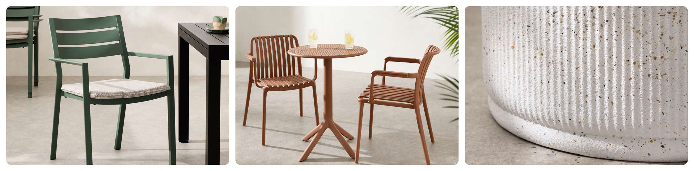 Si vous manquez d’espace, pas de panique. Tanguay propose aussi des ensembles bistro compacts en matériaux recyclés, abordables et résistants aux UV, parfaits pour les balcons urbains.